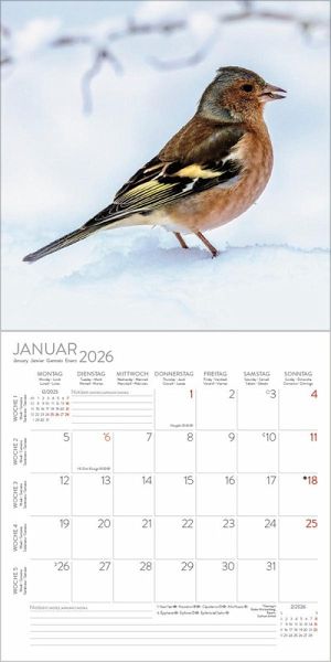 Welche Freude ist es, Vögel im Garten oder in der freien Natur ausgiebig zu beobachten! Wer das Erlebnis ausdehnen möchte, hat mit diesem Kalender die Gelegenheit, die schönsten Vertreter unserer einheimischen Vogelwelt zu Hause in voller Pracht und von Nahem zu bestaunen.