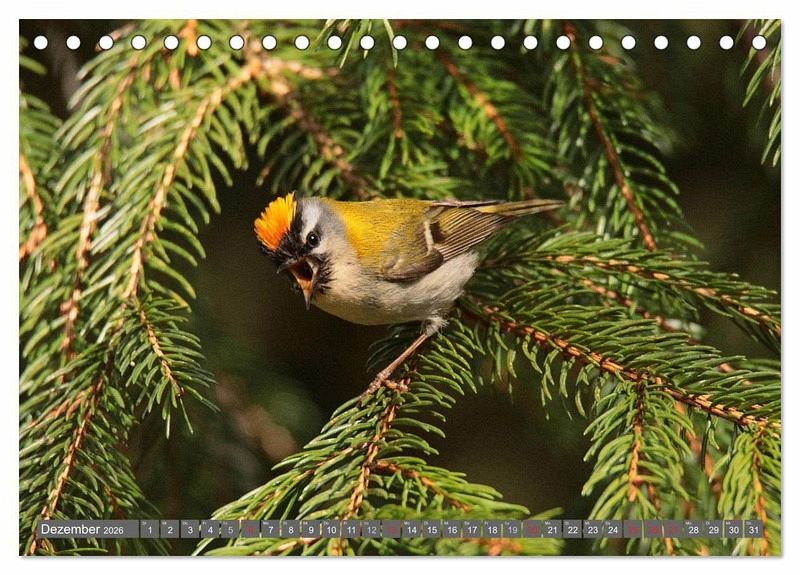 Unsere Vogelwelt besteht nicht nur aus Amsel, Drossel, Fink und Star. Mein Kalender zeigt zum Teil sehr seltene Brutvögel und Wintergäste wie z.B. unseren kleinsten einheimischen Vogel, das Wintergoldhähnchen.