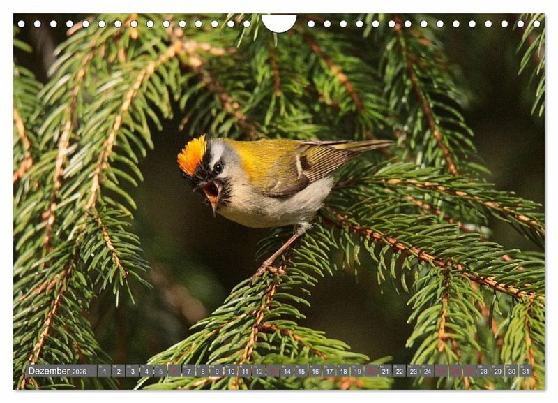Unsere Vogelwelt besteht nicht nur aus Amsel, Drossel, Fink und Star. Mein Kalender zeigt zum Teil sehr seltene Brutvögel und Wintergäste wie z.B. unseren kleinsten einheimischen Vogel, das Wintergoldhähnchen.
