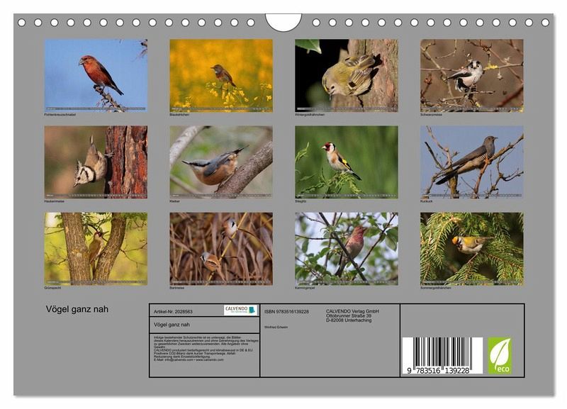 QUALITÄT - Hochwertiger Fotokalender mit 12 wunderschönen Motiven auf lichtbeständigem Bilderdruckpapier, robuste Spiralbindung mit Aufhängebügel.NACHHALTIG - deutliche Abfallreduzierung durch bedarfsgerechte Einzelstückfertigung, umweltfreundliches FSC-zertifiziertes Papier, Produktion in Deutschland, klimabewusste Logistik.PERFEKTES GESCHENK - Kalender für Freunde und Familie, für Kinder und Erwachsene, jung und alt, zu Weihnachten, Geburtstag oder zwischendurch.VIELFALT - Bildkalender in verschiedenen Formaten, z.B. DIN A5, DIN A4, DIN A3 sowie DIN A2. Ob Naturmotiv, Gemälde oder Fotos, ideal für ein persönliches Wohlfühlambiente.Seltene einheimische Vögel aus nächster Nähe fotografiert von Autor(in): Winfried Erlwein