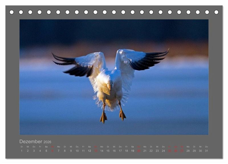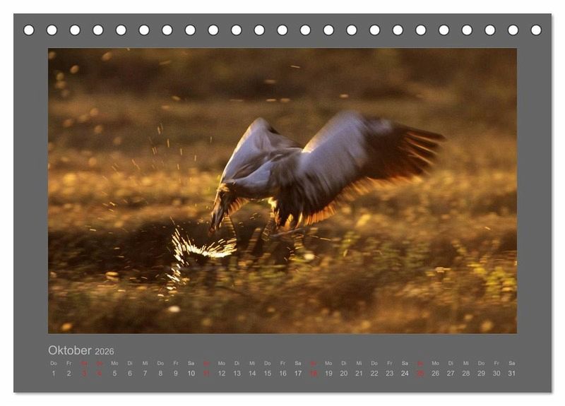 Die wahre Schönheit der Vögel offenbart sich, wenn sie fliegen oder wenn sie ihre Flügel ausbreiten. Als ich sie fotografierte, habe ich das Licht benützt um ihre Schönheit zu einem echten Kunstwerk der Natur zu verwandeln. Das ist ein Kalender für diejenigen, die ein Stück Natur und Eleganz zu Hause oder im Büro an die Wand hängen möchten.
