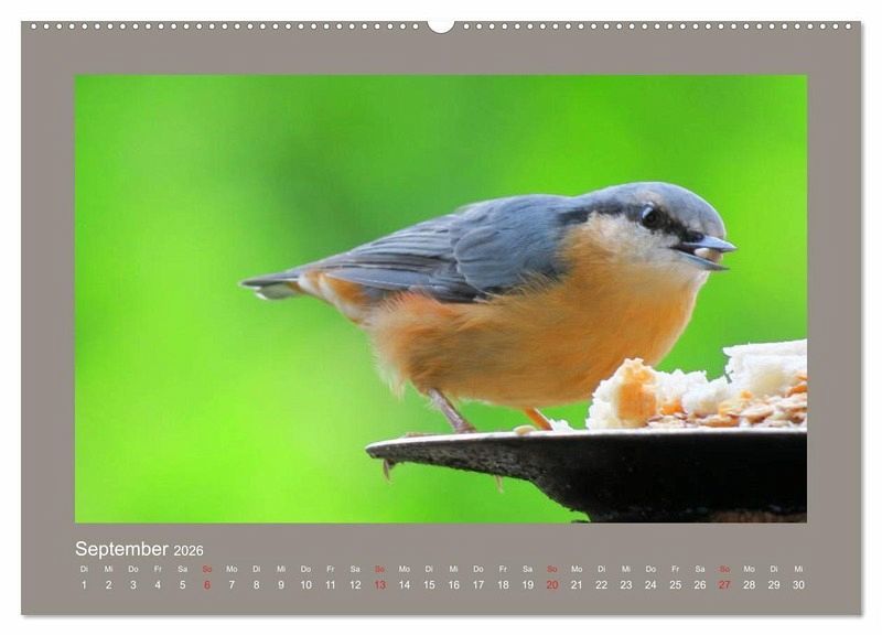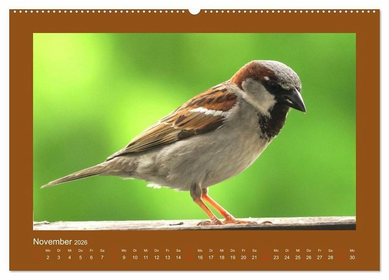 Dieser Kalender zeigt auf 12 Motiven Porträts von verschiedenen Vogelarten aus Deutschland. Viele der kleinen Freunde sind Ihnen sicher bekannt. Freuen Sie sich auf die lustigen Gartenvögel, die Ihnen einen Besuch auf dem Balkon abstatten. Darunter erkennen SIe unter anderem den Hausrotschwanz, den Spatz, die Meise und den Kleiber.