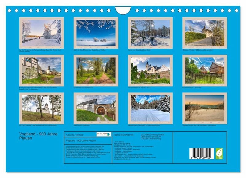 QUALITÄT - Hochwertiger Fotokalender mit 12 wunderschönen Motiven auf lichtbeständigem Bilderdruckpapier, robuste Spiralbindung mit Aufhängebügel.NACHHALTIG - deutliche Abfallreduzierung durch bedarfsgerechte Einzelstückfertigung, umweltfreundliches FSC-zertifiziertes Papier, Produktion in Deutschland, klimabewusste Logistik.PERFEKTES GESCHENK - Kalender für Freunde und Familie, für Kinder und Erwachsene, jung und alt, zu Weihnachten, Geburtstag oder zwischendurch.VIELFALT - Bildkalender in verschiedenen Formaten, z.B. DIN A5, DIN A4, DIN A3 sowie DIN A2. Ob Naturmotiv, Gemälde oder Fotos, ideal für ein persönliches Wohlfühlambiente.13 neue Vogtland Impressionen in phantastischen Aufnahmen werden Sie über das ganze Jahr begleiten und Ihnen viele Anregungen für kleine und große Ausflüge geben. 900 Jahre Plauen sind der Anlass dafür. von Autor(in): studio-fifty-five