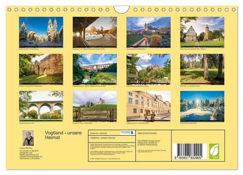 QUALITÄT - Hochwertiger Fotokalender mit 12 wunderschönen Motiven auf lichtbeständigem Bilderdruckpapier, robuste Spiralbindung mit Aufhängebügel.NACHHALTIG - deutliche Abfallreduzierung durch bedarfsgerechte Einzelstückfertigung, umweltfreundliches FSC-zertifiziertes Papier, Produktion in Deutschland, klimabewusste Logistik.PERFEKTES GESCHENK - Kalender für Freunde und Familie, für Kinder und Erwachsene, jung und alt, zu Weihnachten, Geburtstag oder zwischendurch.VIELFALT - Bildkalender in verschiedenen Formaten, z.B. DIN A5, DIN A4, DIN A3 sowie DIN A2. Ob Naturmotiv, Gemälde oder Fotos, ideal für ein persönliches Wohlfühlambiente.Das Vogtland in fantastischen Bildern dargestellt von Autor(in): studio-fifty-five