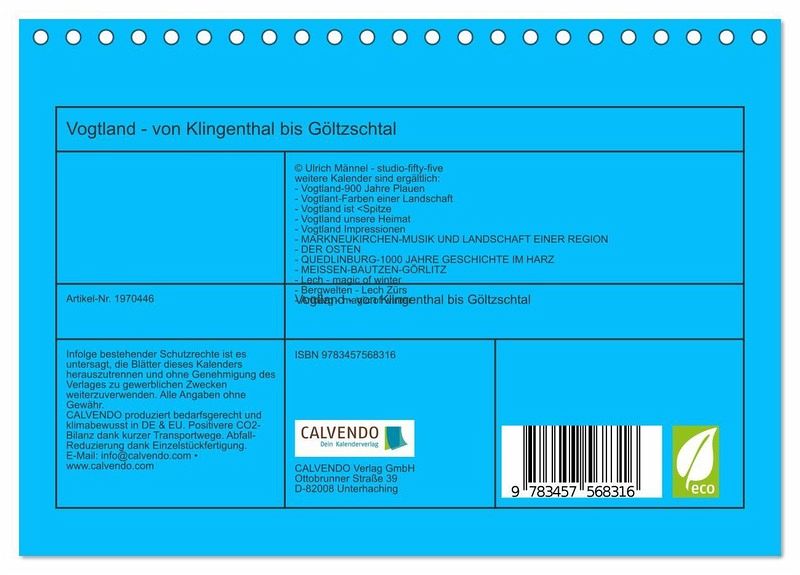 QUALITÄT - Hochwertiger Fotokalender mit 12 wunderschönen Motiven auf lichtbeständigem Bilderdruckpapier, robuste Spiralbindung.NACHHALTIG - deutliche Abfallreduzierung durch bedarfsgerechte Einzelstückfertigung, umweltfreundliches FSC-zertifiziertes Papier, Produktion in Deutschland, klimabewusste Logistik.PERFEKTES GESCHENK - Kalender für Freunde und Familie, für Kinder und Erwachsene, jung und alt, zu Weihnachten, Geburtstag oder zwischendurch.VIELFALT - Bildkalender in verschiedenen Formaten, z.B. DIN A5, DIN A4, DIN A3 sowie DIN A2. Ob Naturmotiv, Gemälde oder Fotos, ideal für ein persönliches Wohlfühlambiente.Ich nehme Sie mit auf eine Reise durch das Vogtland, von Klingenthal, Ort der Vogtland-Arena, bis zur Göltzschtalbrücke, die größte Ziegelsteinbrücke der Welt. von Autor(in): studio-fifty-five