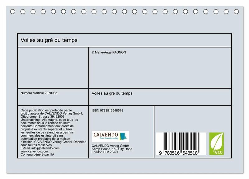 Chaque mois, laissez-vous séduire par des illustrations uniques qui capturent la majesté et l'élégance intemporelle des voiliers. Admirez au quotidien les superbes nuances infinies des eaux marines, le jeu de la lumière sur les voiles et ressentez la liberté de naviguer à travers le temps et l'espace. Ce calendrier est un véritable voyage visuel qui illuminera votre quotidien et sublimera incontestablement votre intérieure.