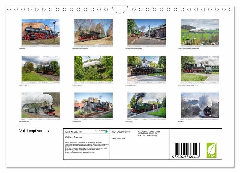 QUALITÄT - Hochwertiger Fotokalender mit 12 wunderschönen Motiven auf lichtbeständigem Bilderdruckpapier, robuste Spiralbindung mit Aufhängebügel.NACHHALTIG - deutliche Abfallreduzierung durch bedarfsgerechte Einzelstückfertigung, umweltfreundliches FSC-zertifiziertes Papier, Produktion in Deutschland, klimabewusste Logistik.PERFEKTES GESCHENK - Kalender für Freundeund Familie, für Kinder und Erwachsene, jung und alt, zu Weihnachten, Geburtstag oder zwischendurch.VIELFALT - Bildkalender in verschiedenen Formaten, z.B. DIN A5, DIN A4, DIN A3 sowie DIN A2. Ob Naturmotiv, Gemälde oder Fotos, ideal für ein persönliches Wohlfühlambiente.Mit liebevoll restaurierten Fahrzeugen, historischen Strecken und authentischem Betrieb entführen sie Besucher auf eine nostalgische Reise in die Vergangenheit. von Autor(in): Steffen Gierok ; Magik Artist Design