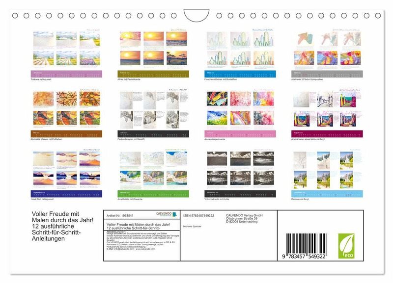 QUALITÄT - Hochwertiger Fotokalender mit 12 wunderschönen Motiven auf lichtbeständigem Bilderdruckpapier, robuste Spiralbindung mit Aufhängebügel.NACHHALTIG - deutliche Abfallreduzierung durch bedarfsgerechte Einzelstückfertigung, umweltfreundliches FSC-zertifiziertes Papier, Produktion in Deutschland, klimabewusste Logistik.PERFEKTES GESCHENK - Kalender für Freunde und Familie, für Kinder und Erwachsene, jung und alt, zu Weihnachten, Geburtstag oder zwischendurch.VIELFALT - Bildkalender in verschiedenen Formaten, z.B. DIN A5, DIN A4, DIN A3 sowie DIN A2. Ob Naturmotiv, Gemälde oder Fotos, ideal für ein persönliches Wohlfühlambiente.Zwölf Bilder in zwölf Monaten einfach selbst malen! von Autor(in): Michaela Spreider