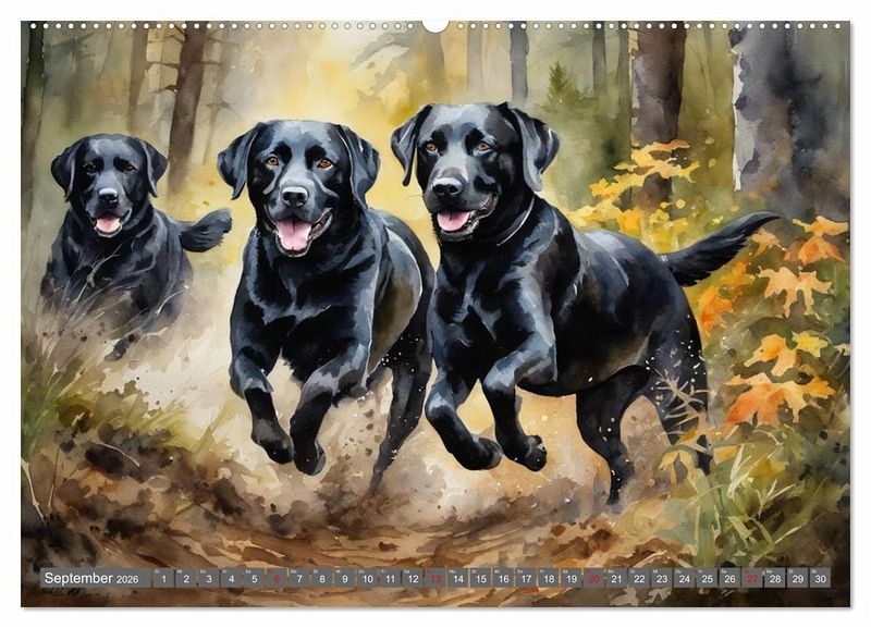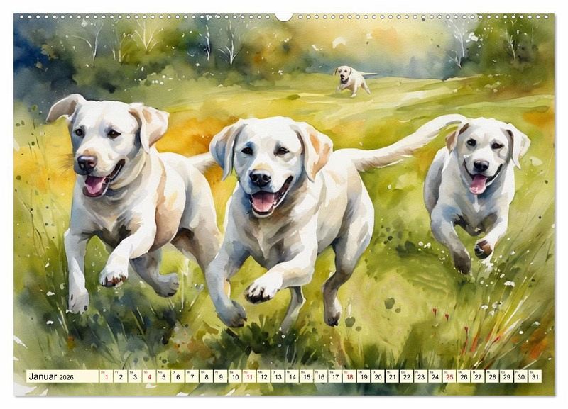 Der beliebteste Rassehund ist bekannt für seine freundliche Art, seine Intelligenz und Kraft und Energie. Labrador Retriever sind mittelgroße bis große Hunde mit kurzem, dichtem Fell in den Farben schwarz, braun, golden und weiß. Mithilfe der KI wurden zauberhafte Aquarelle aller Farbschläge dieser liebenswerten Hunderasse, die oft auch nur Labbi genannt wird, generiert.