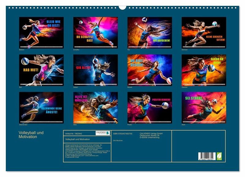 Bestelle noch heute unseren "Volleyball undMotivation" Wandkalender und lasse dich von der Kraft des Volleyballs inspirieren. Starte das Jahr mit einer Explosion an Energie und Begeisterung! Erstellt wurde dieser Kalender im übrigen mit KI und Photoshop.