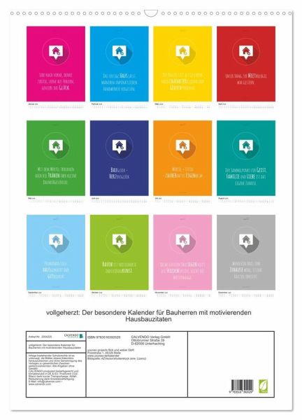 QUALITÄT - Hochwertiger Fotokalender mit 12 wunderschönen Motiven auf lichtbeständigem Bilderdruckpapier, robuste Spiralbindung mit Aufhängebügel.NACHHALTIG - deutliche Abfallreduzierung durch bedarfsgerechte Einzelstückfertigung, umweltfreundliches FSC-zertifiziertes Papier, Produktion in Deutschland, klimabewusste Logistik.PERFEKTES GESCHENK - Kalender für Freunde und Familie, für Kinder und Erwachsene, jung und alt, zu Weihnachten, Geburtstag oder zwischendurch.VIELFALT - Bildkalender in verschiedenen Formaten, z.B.DIN A5, DIN A4, DIN A3 sowie DIN A2. Ob Naturmotiv, Gemälde oder Fotos, ideal für ein persönliches Wohlfühlambiente.Wunderbarer Zitatekalender zum Bau von Autor(in): Mathias Weber