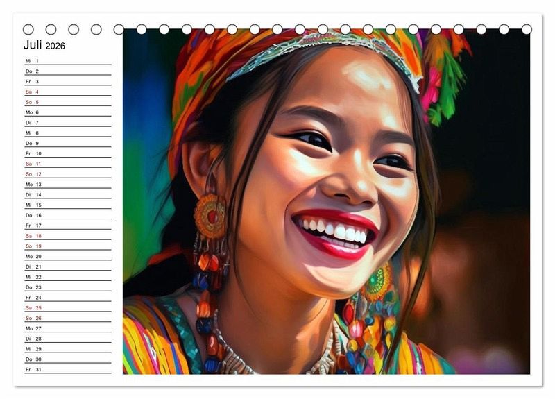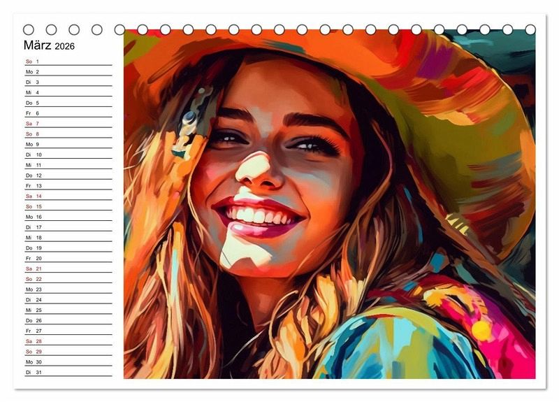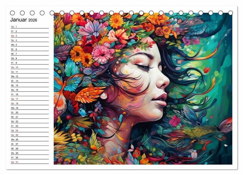 Ein farbenfroher Kalender voller Freude, Anmut und ansteckendem Lachen. Die Kraft der Jahreszeiten, die Anmut des Weiblichen rund um die Welt und einfach gute Laune für ein ganzes Jahr. Die Bilder dieses Kalenders wurden mit KI erstellt und in Photoshop finalisiert.