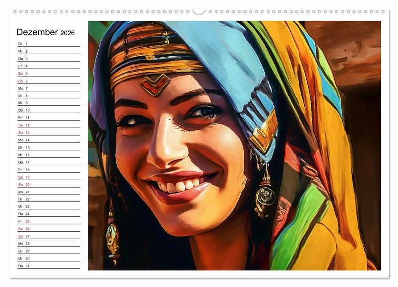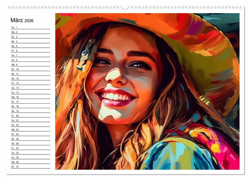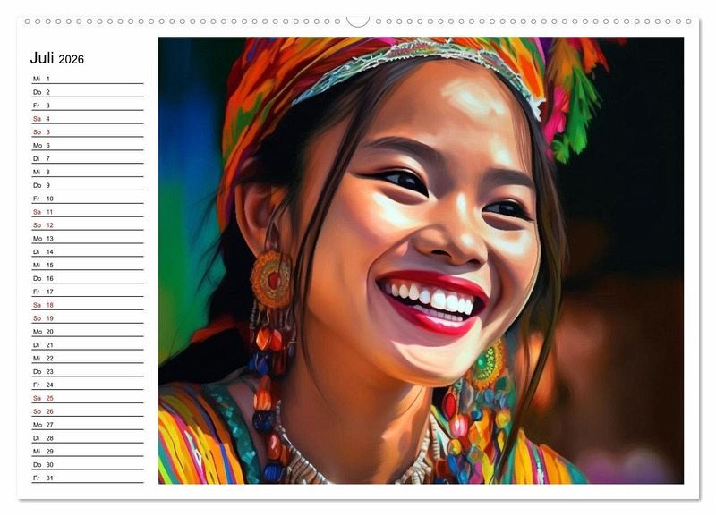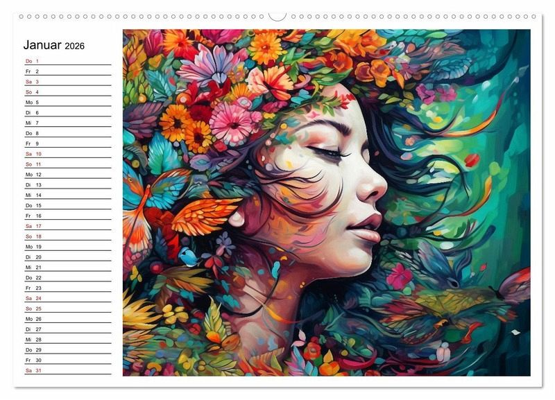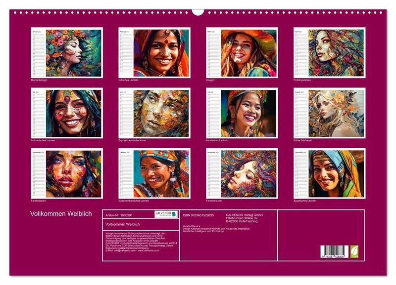 Ein farbenfroher Kalender voller Freude, Anmut und ansteckendem Lachen. Die Kraft der Jahreszeiten, die Anmut des Weiblichen rund um die Welt und einfach gute Laune für ein ganzes Jahr. Die Bilder dieses Kalenders wurden mit KI erstellt und in Photoshop finalisiert.