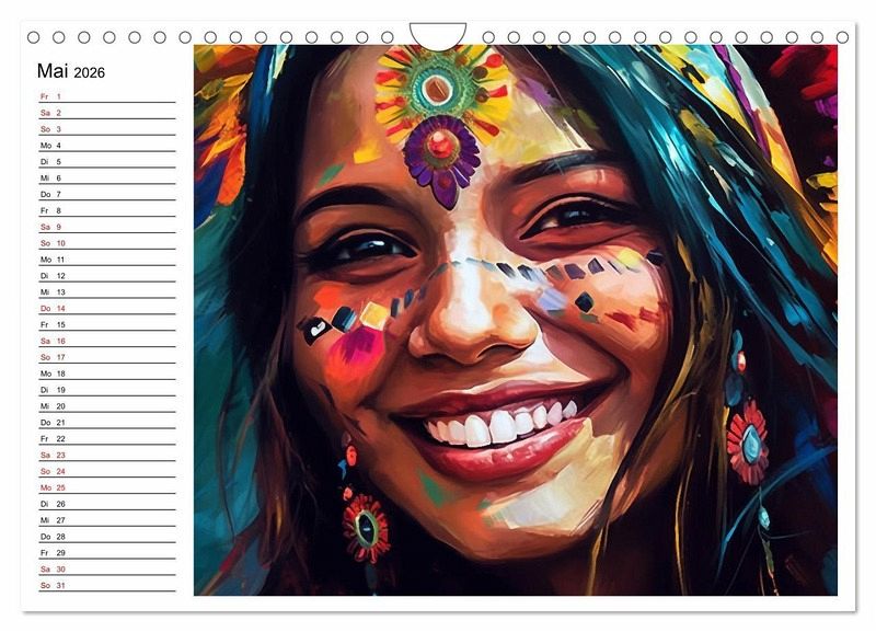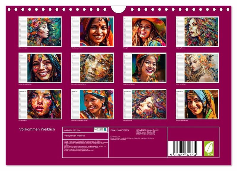 Ein farbenfroher Kalender voller Freude, Anmut und ansteckendem Lachen. Die Kraft der Jahreszeiten, die Anmut des Weiblichen rund um die Welt und einfach gute Laune für ein ganzes Jahr. Die Bilder dieses Kalenders wurden mit KI erstellt und in Photoshop finalisiert.