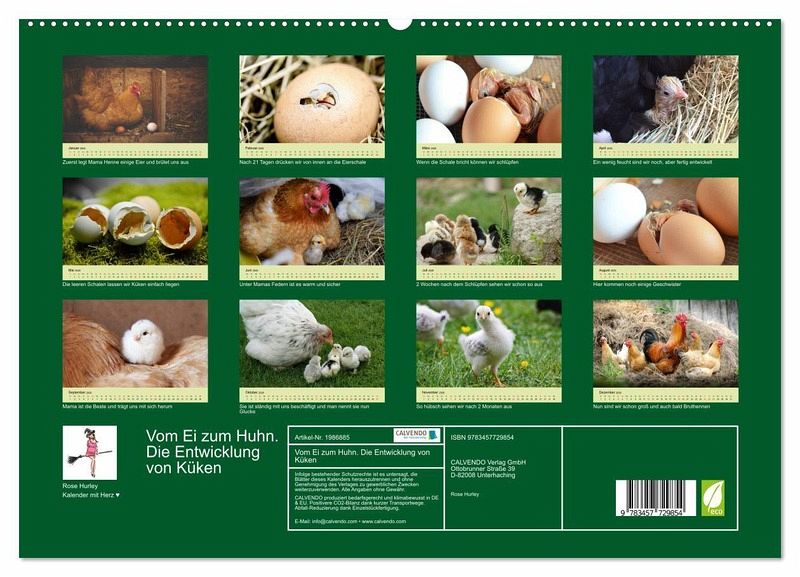 PREMIUM-LINIE - Brillanter Fotokalender mit 12 wunderschönen Motiven, Kunstdruck in Hochglanz in Museumsqualität.QUALITÄT - edle Materialien, stabile Rückwand mit 2 innovativen Einstecktaschen für eine optimale Präsentation an der Wand.NACHHALTIG - deutliche Abfallreduzierung durch bedarfsgerechte Einzelstückfertigung, umweltfreundliches FSC-zertifiziertes Papier, Produktion in Deutschland, klimabewusste Logistik.PERFEKTES GESCHENK - Kalender für Freunde und Familie, für Kinder und Erwachsene, jung und alt, zu Weihnachten, Geburtstag oder zwischendurch.Die erstaunliche Geburt von niedlichen Küken von Autor(in): Rose Hurley