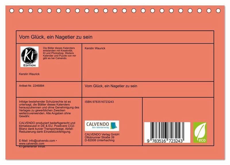QUALITÄT - Hochwertiger Fotokalender mit 12 wunderschönen Motiven auf lichtbeständigem Bilderdruckpapier, robuste Spiralbindung.NACHHALTIG - deutliche Abfallreduzierung durch bedarfsgerechte Einzelstückfertigung, umweltfreundliches FSC-zertifiziertes Papier, Produktion in Deutschland, klimabewusste Logistik.PERFEKTES GESCHENK - Kalender für Freunde und Familie, für Kinder und Erwachsene, jung und alt, zu Weihnachten, Geburtstag oder zwischendurch.VIELFALT - Bildkalender in verschiedenen Formaten, z.B. DIN A5, DIN A4, DIN A3 sowie DIN A2. Ob Naturmotiv, Gemälde oder Fotos, ideal für ein persönliches Wohlfühlambiente.Süß genug zum Dahinschmelzen - und chaotisch genug zum Verzweifeln. Das Leben mit Nagetieren. von Autor(in): Kerstin Waurick