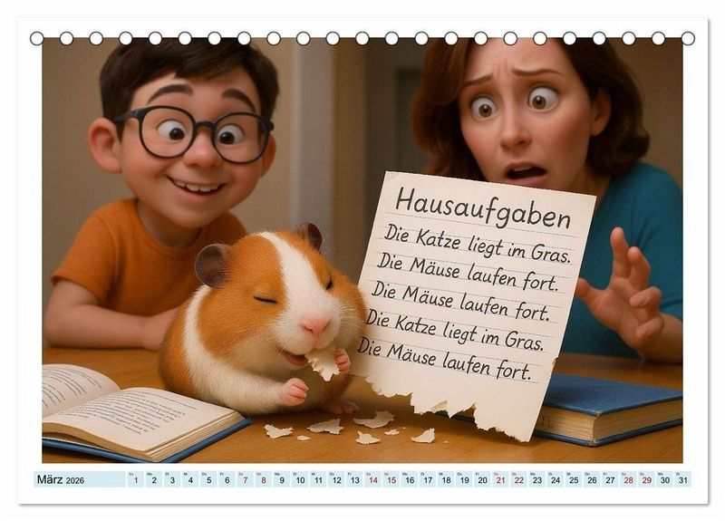 Hamster, Kaninchen, Ratten, Chinchillas, Mäuse oder Meerschweinchen - alle haben sie eines gemeinsam: Sie sorgen für Chaos. Dieser Kalender zeigt mit einem Augenzwinkern, wie niedlich und gleichzeitig katastrophal das Leben mit Nagern sein kann. Die meisten Szenen sind nicht ausgedacht, sondern kamen genau so im Leben der Autorin vor. Die detailreichen Bilder wurden mit Hilfe von Künstlicher Intelligenz gestaltet und fangen die charmanten Katastrophen unserer kleinen Mitbewohner perfekt ein. Ein Muss für alle, die Humor und Tierliebe gleichermaßen schätzen.
