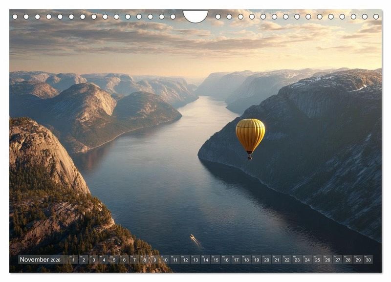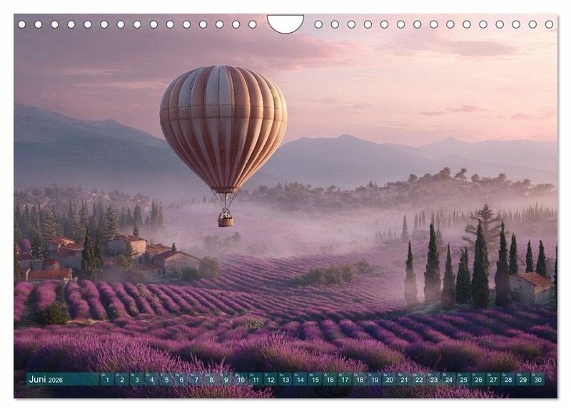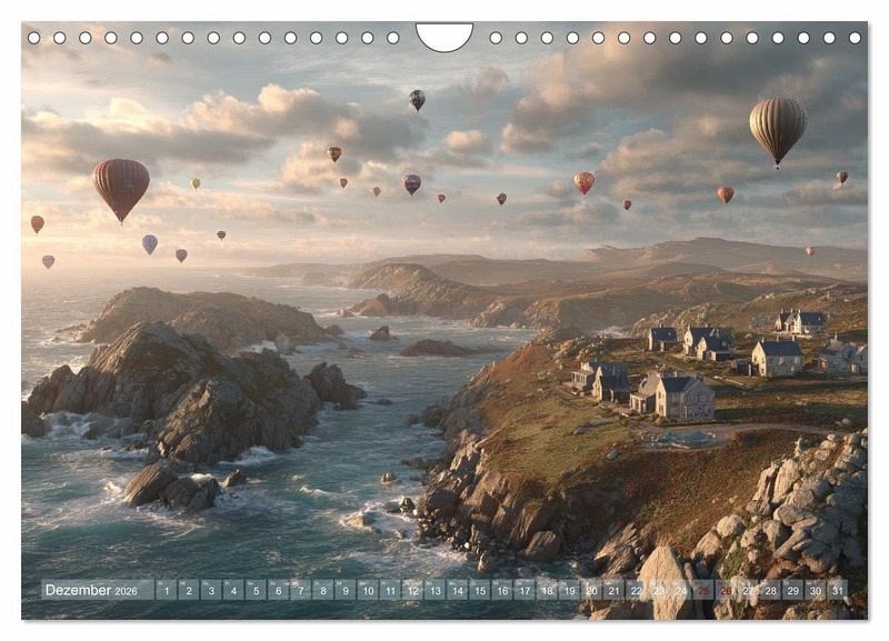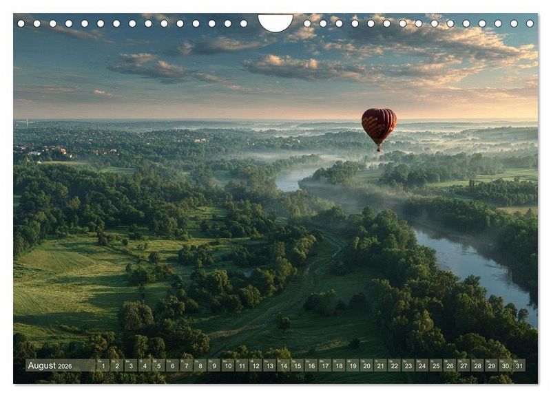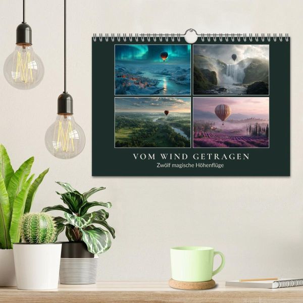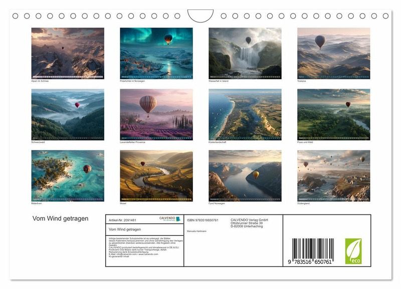 Zwölf stille Höhenflüge, getragen vom Wind - dieser Kalender lädt ein, die Welt aus einer anderen Perspektive zu sehen. Weite Landschaften, sanftes Licht und der ruhige Tanz eines Ballons am Himmel lassen Raum zum Atmen und Träumen. Ob über herbstlichen Flusstälern, blühenden Feldern oder verschneiten Bergen - jedes Bild erzählt von Freiheit, Stille und Schönheit.