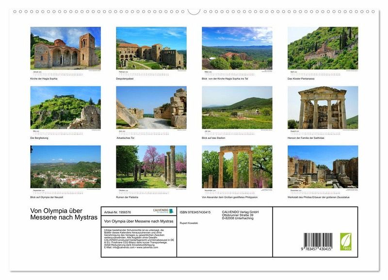 PREMIUM-LINIE - Brillanter Fotokalender mit 12 wunderschönen Motiven, Kunstdruck in Hochglanz in Museumsqualität.QUALITÄT - edle Materialien, stabile Rückwand mit 2 innovativen Einstecktaschen für eine optimale Präsentation an der Wand.NACHHALTIG - deutliche Abfallreduzierung durch bedarfsgerechte Einzelstückfertigung, umweltfreundliches FSC-zertifiziertes Papier, Produktion in Deutschland, klimabewusste Logistik.PERFEKTES GESCHENK - Kalender für Freunde und Familie, für Kinder und Erwachsene, jung und alt, zu Weihnachten, Geburtstag oder zwischendurch.Der traumhaft schöne westliche und südliche Teil der griechischen Peloponnes findet mit all seinen herausragenden Facetten seinen Weg in Ihr Wohnzimmer und bietet Ihnen so traumhafte Ansichten des antiken Griechenlands. von Autor(in): Rupert Kowalski