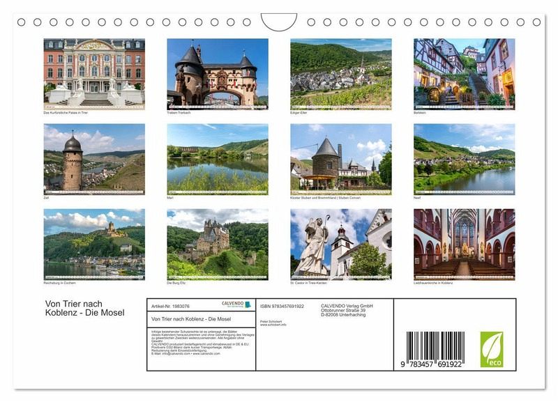 QUALITÄT - Hochwertiger Fotokalender mit 12 wunderschönen Motiven auf lichtbeständigem Bilderdruckpapier, robuste Spiralbindung mit Aufhängebügel.NACHHALTIG - deutliche Abfallreduzierung durch bedarfsgerechte Einzelstückfertigung, umweltfreundliches FSC-zertifiziertes Papier, Produktion in Deutschland, klimabewusste Logistik.PERFEKTES GESCHENK - Kalender für Freunde und Familie, für Kinder und Erwachsene, jung und alt, zu Weihnachten, Geburtstag oder zwischendurch.VIELFALT - Bildkalender in verschiedenen Formaten, z.B. DIN A5, DIN A4, DIN A3 sowie DIN A2. Ob Naturmotiv, Gemälde oder Fotos, ideal für ein persönliches Wohlfühlambiente.12 wunderbare Bilder einer Reise entlang der Mosel von Trier bis Koblenz. von Autor(in): Peter Schickert