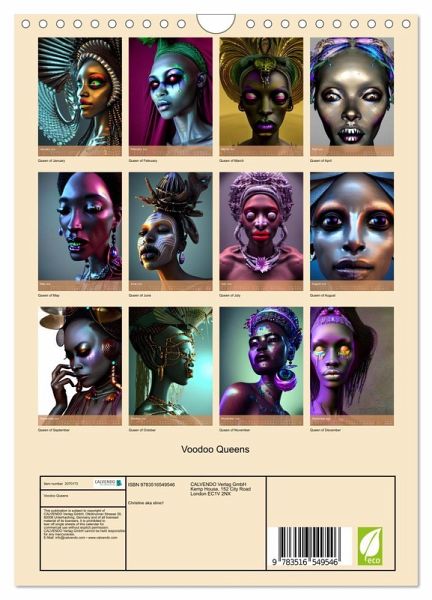 QUALITY - High-quality photo calendar with 12 beautiful images on light-resistant paper, robust spiral binding with hanger.SUSTAINABLE - Significant waste reduction due to print-on-demand production, environmentally friendly FSC-certified paper, produced in the UK, climate-conscious logistical processes.PERFECT GIFT - calendars for friends and family, for children, all ages and all occasions, from Christmas to birthdays and everything in between.LOTS OF CHOICE - Wall calendars in different sizes (DIN A4 and DIN A3), for any topic and personal taste, featuring photography, painting and illustrations.Women of Voodoo created with Artificial Intelligence, author: Christine aka stine1