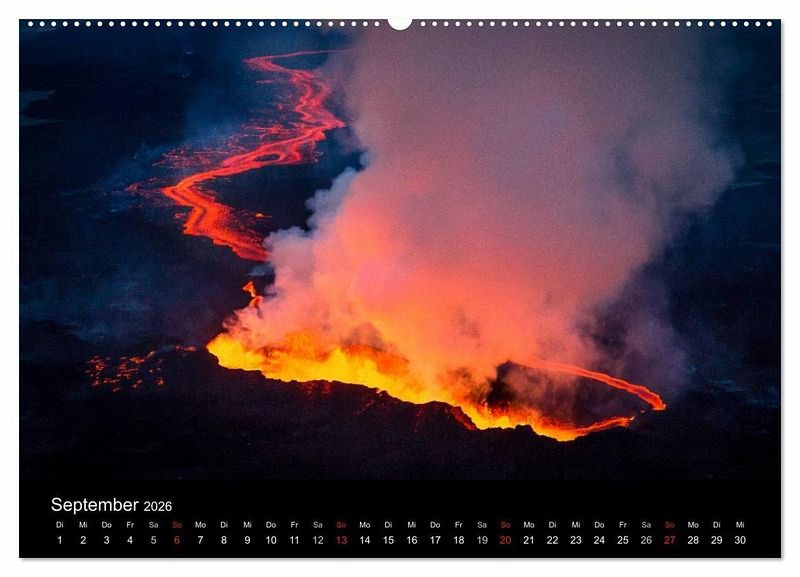 Der heißeste Kalender des Jahres. Der Ausbruch des Bardarbunga - das Jahrhundertereignis auf Island. Sehen Sie meterhohe Lavafontänen in den Himmel schießen und blicken Sie in das innere der Erde. Aufnahmen aus der Luft und vom Boden bringen Ihnen dieses grandiose Ereignis nahe.