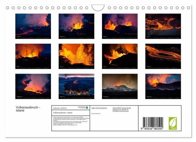 QUALITÄT - Hochwertiger Fotokalender mit 12 wunderschönen Motiven auf lichtbeständigem Bilderdruckpapier, robuste Spiralbindung mit Aufhängebügel.NACHHALTIG - deutliche Abfallreduzierung durch bedarfsgerechte Einzelstückfertigung, umweltfreundliches FSC-zertifiziertes Papier, Produktion in Deutschland, klimabewusste Logistik.PERFEKTES GESCHENK - Kalender für Freunde und Familie, für Kinder und Erwachsene, jung und alt, zu Weihnachten, Geburtstag oder zwischendurch.VIELFALT - Bildkalender in verschiedenen Formaten, z.B. DIN A5, DIN A4, DIN A3 sowie DIN A2. Ob Naturmotiv, Gemälde oder Fotos, ideal für ein persönliches Wohlfühlambiente.Spektakuläre Bilder der neuesten Vulkan Eruption in Island von Autor(in): Daniel Haussmann