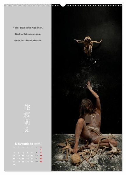 Übermut, sinnliche Jugend und Schamlosigkeit auf der einen Seite - Staub, Moder und Zerfall auf der andern Seite - sind das Spannungsfeld, in dem die Bodypainting/Akt-Kalenderbilder entstanden sind. "WABI SABI" ist ein japanisches Schönheitskonzept, das elend, verloren und alt sein kombiniert, und das in der westlichen Ästhetik zunehmend Beachtung findet. "MOE" gibt ursprünglich die Sicht des Zen von einer Welt in kindlicher Naivität und Spontaneität wieder. Die Bedeutung in der Comic-Kultur heute kann übersetzt werden mit "Fan sein von ...".