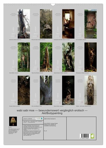 Übermut, sinnliche Jugend und Schamlosigkeit auf der einen Seite - Staub, Moder und Zerfall auf der andern Seite - sind das Spannungsfeld, in dem die Bodypainting/Akt-Kalenderbilder entstanden sind. "WABI SABI" ist ein japanisches Schönheitskonzept, das elend, verloren und alt sein kombiniert, und das in der westlichen Ästhetik zunehmend Beachtung findet. "MOE" gibt ursprünglich die Sicht des Zen von einer Welt in kindlicher Naivität und Spontaneität wieder. Die Bedeutung in der Comic-Kultur heute kann übersetzt werden mit "Fan sein von ...". Die spätere Einschränkung von "wabi sabi moe" zu…mehr
