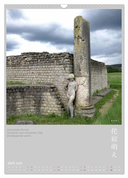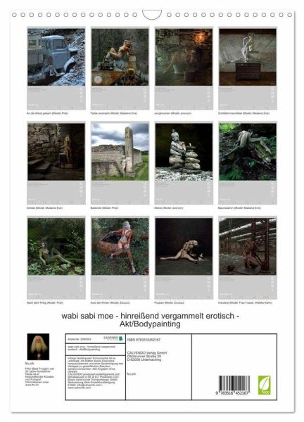 Übermut, sinnliche Jugend und Schamlosigkeit auf der einen Seite - liegen gelassener Plunder und Zeugnisse von vergangenem Fleiß auf der anderen Seite - sind das Spannungsfeld, in dem die Bodypainting/Akt-Kalenderbilder entstanden sind. "WABI SABI" ist ein japanisches Schönheitskonzept, das elend, verloren und alt sein kombiniert, und das in der westlichen Ästhetik zunehmend Beachtung findet. "MOE" gibt ursprünglich die Sicht des Zen von einer Welt in kindlicher Naivität und Spontaneität wieder. Die Bedeutung in der Comic-Kultur heute kann übersetzt werden mit "Fan sein von ...". Die spätere…mehr