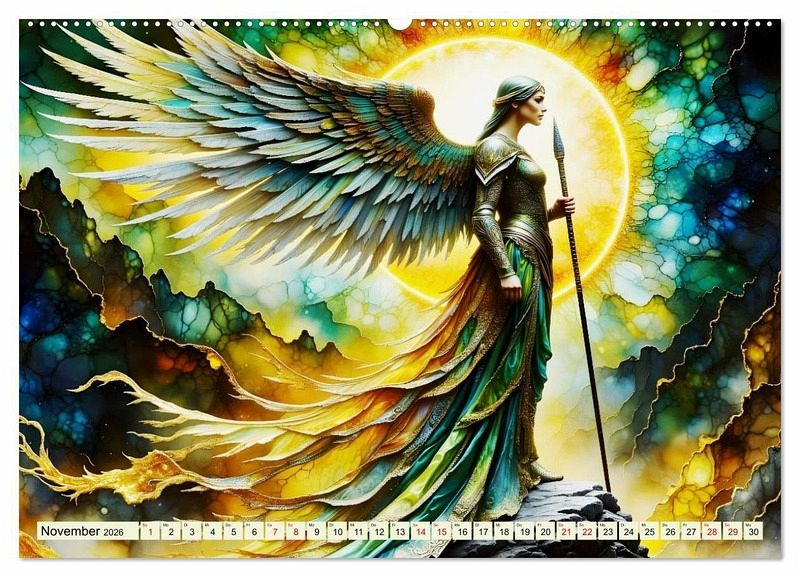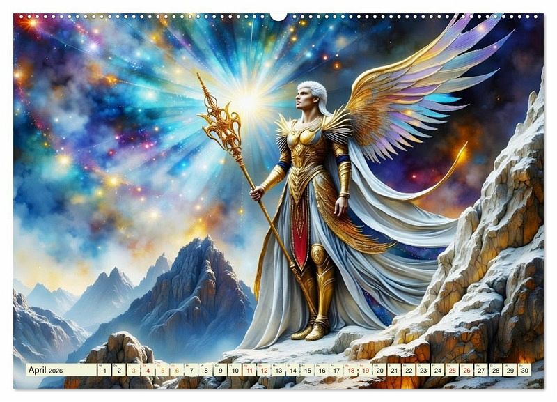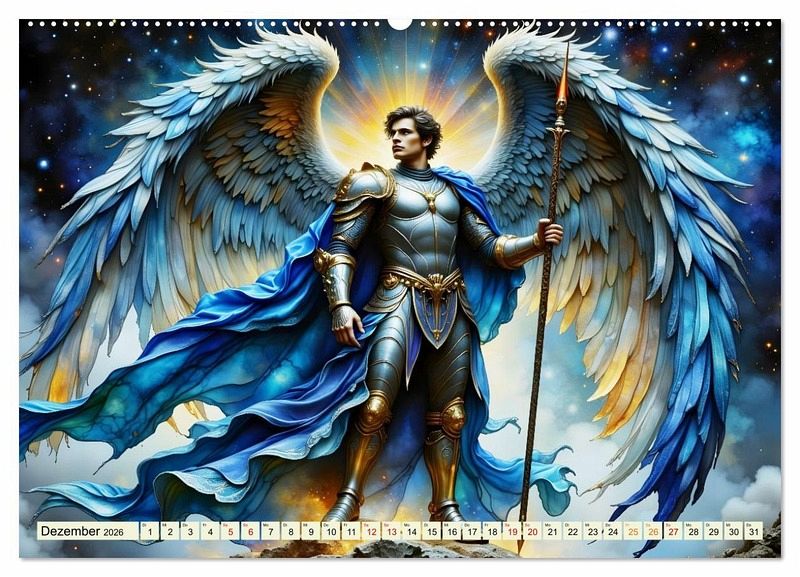 Dieser Kalender wurde von KI erschaffen und entführt Sie in ein farbenfrohes Reich himmlischer Gestalten. Anmutige Engelritter erstrahlen in leuchtender Schönheit, auf einem majestätischen Berg thronen, die schützenden Hüter einer Welt voller Licht und Poesie. Jeder Blick auf diese kunstvoll inszenierten Bilder öffnet ein Fenster zur Unendlichkeit. Tauchen Sie ein in diese himmlischen Geschichten und lassen Sie sich von der Magie des Unbekannten berühren.