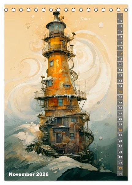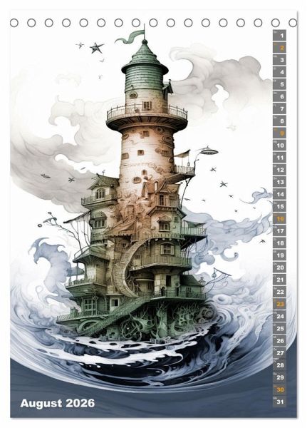 Eine einzigartige Sammlung von Illustrationen, die surreale Architektur zum Leben erweckt. Jeder Monat präsentiert einen neuen Wächter, der mit leuchtenden Farben, faszinierenden Details und einer atmosphärischen Stimmung begeistert. Die surrealen Leuchttürme symbolisieren die Verbindung zwischen Realität und Fantasie, während sie majestätisch über dem Meer wachen. Lassen Sie sich von der surreal-architektonischen Pracht der Wächter der Meere in eine Welt voller Magie entführen.