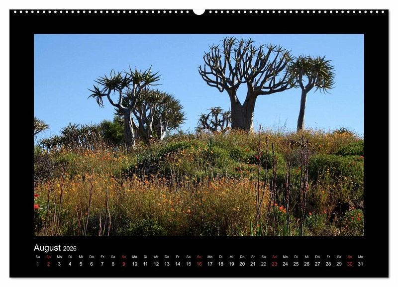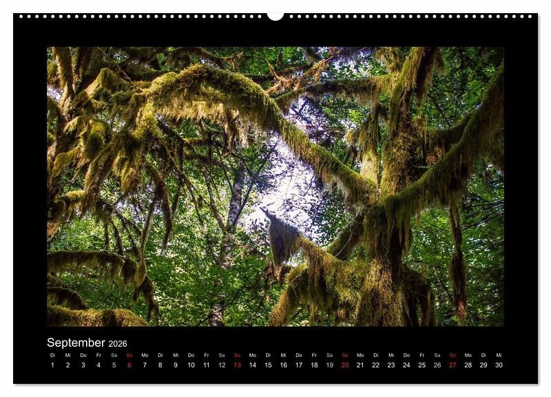 Ein Kalender für jeden, der sich für Wälder interessiert und die Landschaften, in denen sie entstehen. Es werden Bilder gezeigt vom gepflegten deutschen Wald, den kargen Landschaften Afrikas, der prallen Vielfalt Australiens und von einem der letzten Regenwälder der Vereinigten Staaten, dem Olympic National Park. Eine Besonderheit bieten in Afrika die Köcherbaumwälder. Sie sind besonders angepasst, vertragen große Hitze und lange Perioden ohne Wasser. Da es nicht sehr viele gibt, werden schon kleinste Gruppen als Wald bezeichnet. Das letzte Bild zeigt (wieder in den USA) Reste eines toten Walds, der durch das aggressive Wasser des Yellowstone langsam vernichtet wird.
