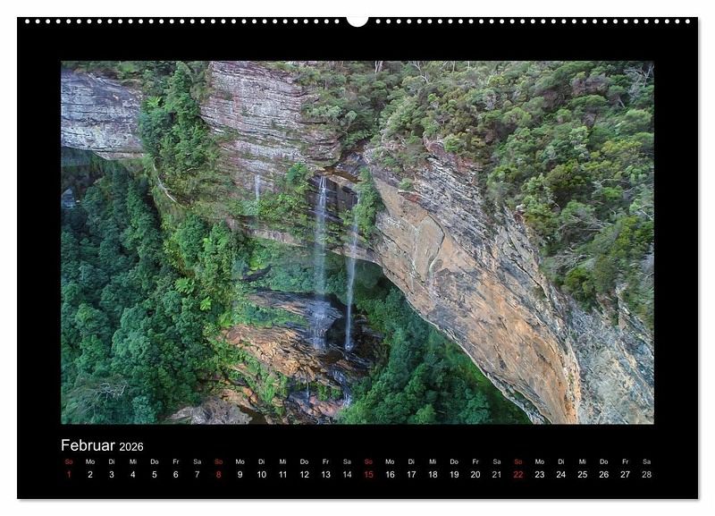 Februar: Klippe mit Wasserfall, Blue Mountains, Australien