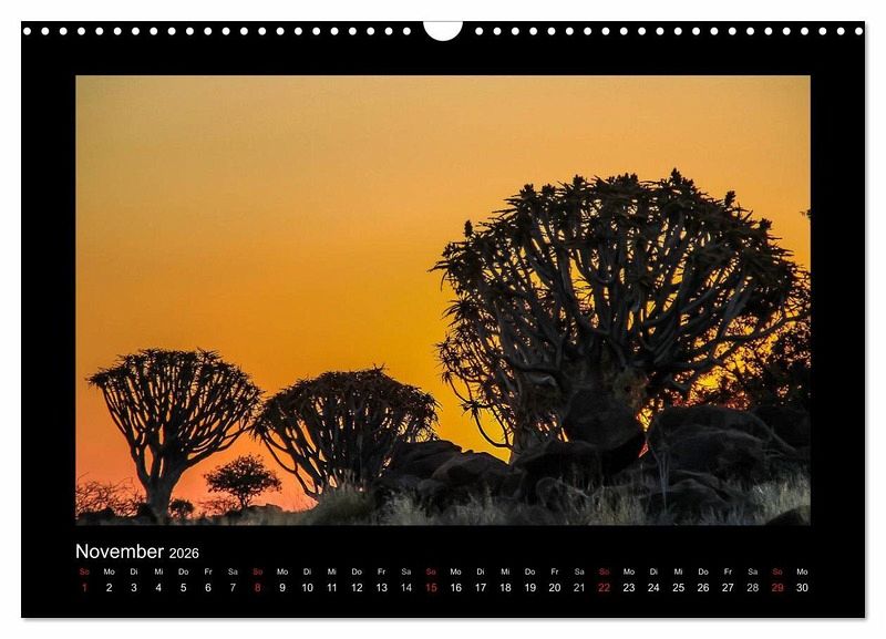 Ein Kalender für jeden, der sich für Wälder interessiert und die Landschaften, in denen sie entstehen. Es werden Bilder gezeigt vom gepflegten deutschen Wald, den kargen Landschaften Afrikas, der prallen Vielfalt Australiens und von einem der letzten Regenwälder der Vereinigten Staaten, dem Olympic National Park. Eine Besonderheit bieten in Afrika die Köcherbaumwälder. Sie sind besonders angepasst, vertragen große Hitze und lange Perioden ohne Wasser. Da es nicht sehr viele gibt, werden schon kleinste Gruppen als Wald bezeichnet. Das letzte Bild zeigt (wieder in den USA) Reste eines toten Walds, der durch das aggressive Wasser des Yellowstone langsam vernichtet wird.