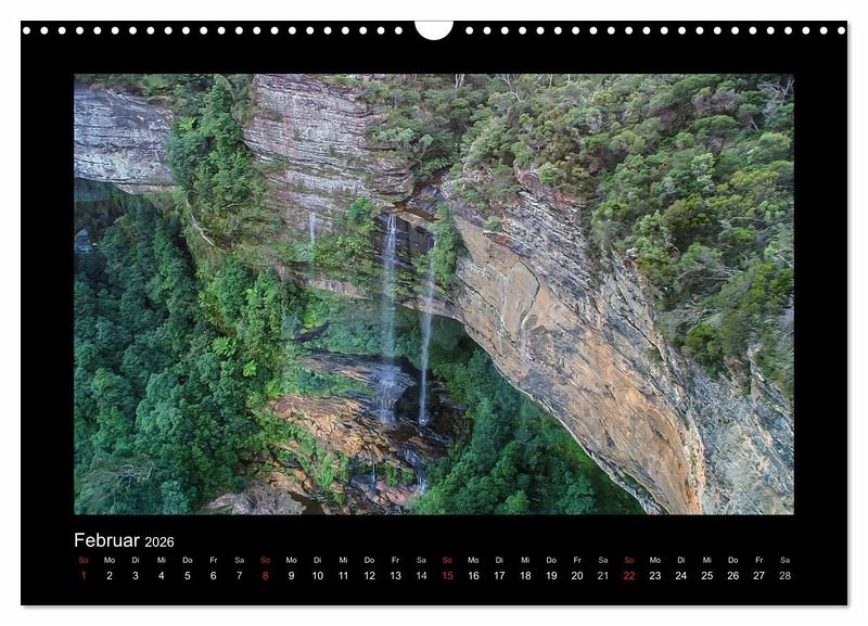 Februar: Klippe mit Wasserfall, Blue Mountains, Australien