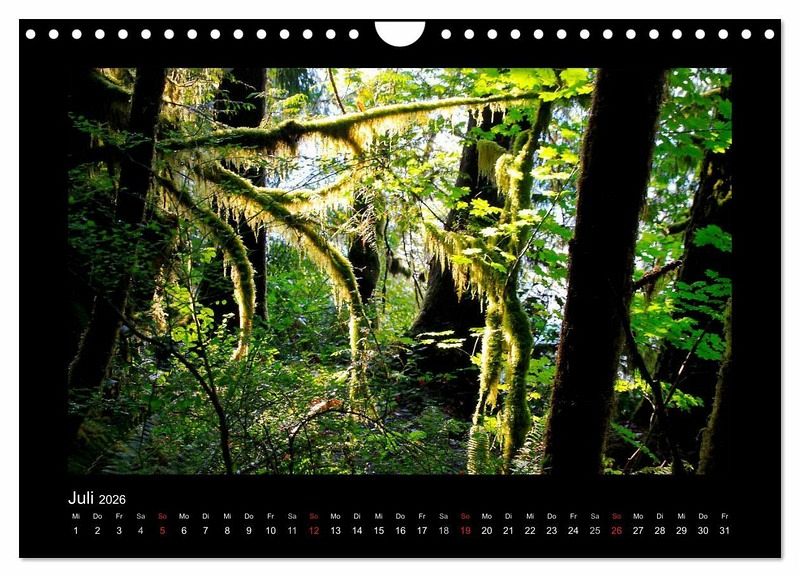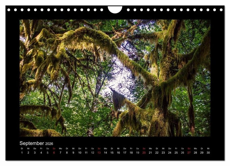 Ein Kalender für jeden, der sich für Wälder interessiert und die Landschaften, in denen sie entstehen. Es werden Bilder gezeigt vom gepflegten deutschen Wald, den kargen Landschaften Afrikas, der prallen Vielfalt Australiens und von einem der letzten Regenwälder der Vereinigten Staaten, dem Olympic National Park. Eine Besonderheit bieten in Afrika die Köcherbaumwälder. Sie sind besonders angepasst, vertragen große Hitze und lange Perioden ohne Wasser. Da es nicht sehr viele gibt, werden schon kleinste Gruppen als Wald bezeichnet. Das letzte Bild zeigt (wieder in den USA) Reste eines toten Walds, der durch das aggressive Wasser des Yellowstone langsam vernichtet wird.
