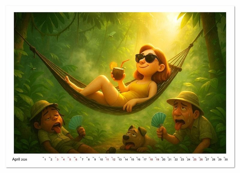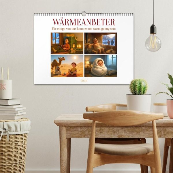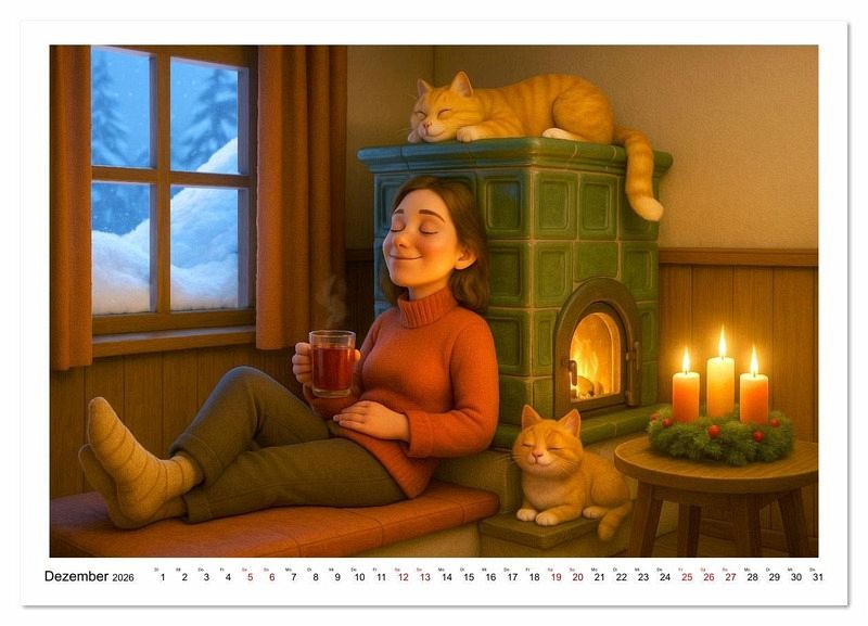 Für alle, denen "zu heiß" einfach nicht heiß genug ist: Dieser Kalender feiert die Hitzeliebhaber - ob beim Schwitzen in der Sauna, Träumen vorm Kachelofen oder Chillen im Wüstensand. Mit einem Augenzwinkern und viel Fantasie zeigt jede Monatsseite, wie wunderbar Wärme sein kann. Die Szenen wurden mit Hilfe künstlicher Intelligenz gestaltet - überraschend, charmant und garantiert schweißtreibend schön.