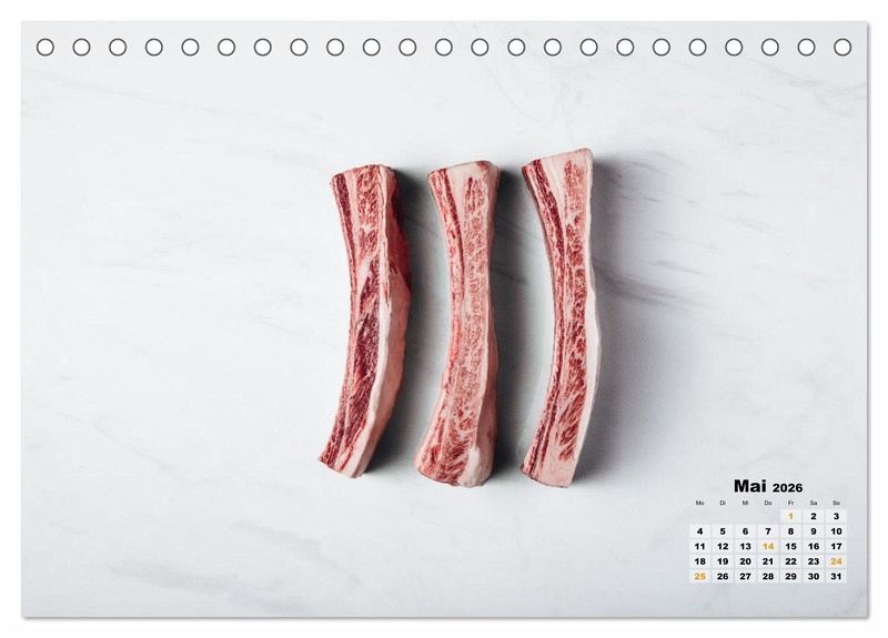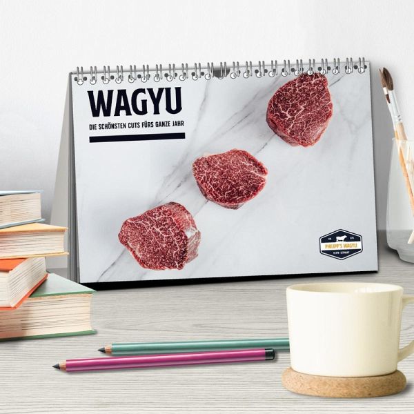 Das wohl edelste Fleisch der Welt: puristisch inszeniert, leuchtend, roh. Wagyu. Beim Anblick der gekonnten Symbiose aus strahlend weißem Fett und dem leuchtenden Rot des perfekt gereiften Fleisches läuft einem schockartig das Wasser im Mund zusammen. Der Puls fängt an zu pochen. Ehe man sich versieht, schießt es einem völlig fleischverliebt durch den Kopf, wie schön es jetzt wäre, das Steak auszuschneiden und auf den Grill zu legen ... Das wäre allerdings zu schade für die vollendete Fleischkunst, an dem jeder Carnivore das ganze Jahr lang seine Freude haben wird.
