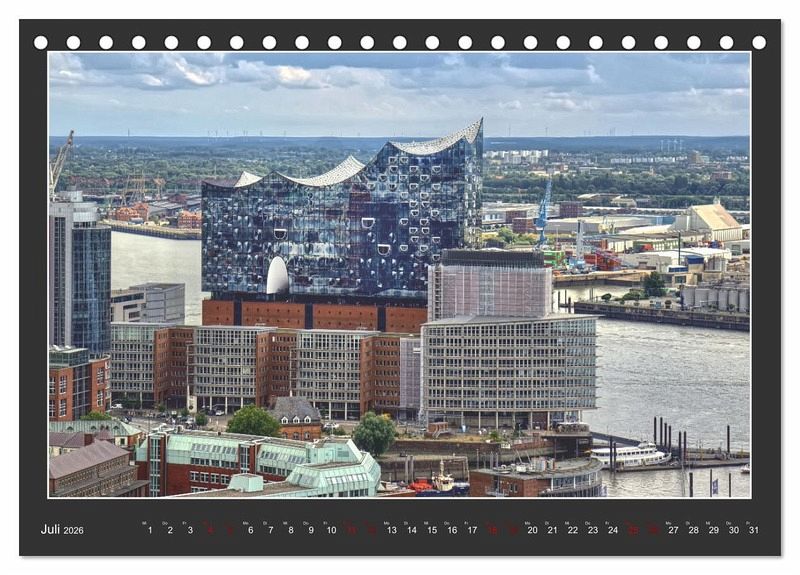 Immer wieder neu sieht die Elphi aus je nach Betrachtungsstandort wie zum Beispiel aus der Luft oder in Situationen wie beim Hafengeburtstag oder mit einem künstlerischem Umfeld. Freuen Sie sich jeden Monat über eine andere spektakuläre Sicht auf das neue Wahrzeichen Hamburgs. Weitere Motive des Autors im Kalender "Die Elbphilharmonie Hamburg".