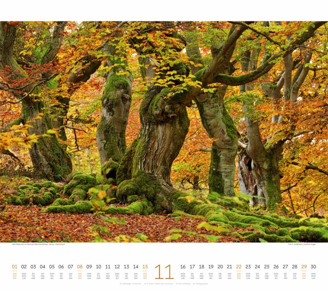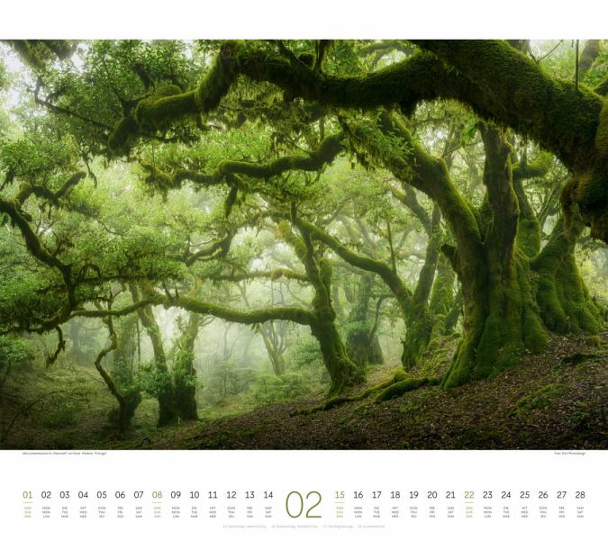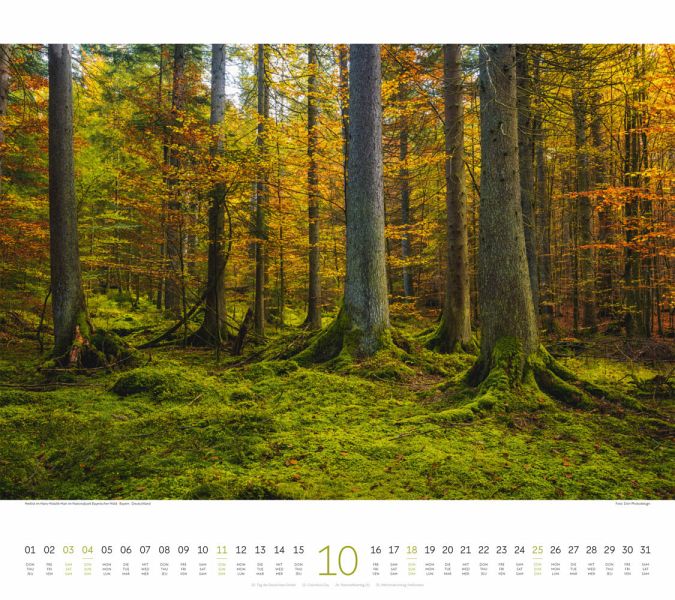 Stimmungsvolle Aufnahmen von Wäldern rund um den GlobusNatur-Kalender im großen Querformat: 54x48 cmHochwertiger Wandkalender mit 200 g/qm Papier und SpiralbindungAuf Papier aus nachhaltiger Forstwirtschaft in Deutschland produziertLeistet einen Beitrag zum Ackermann Firmenwald3-sprachiges Kalendarium: Deutsch, Englisch, Französisch