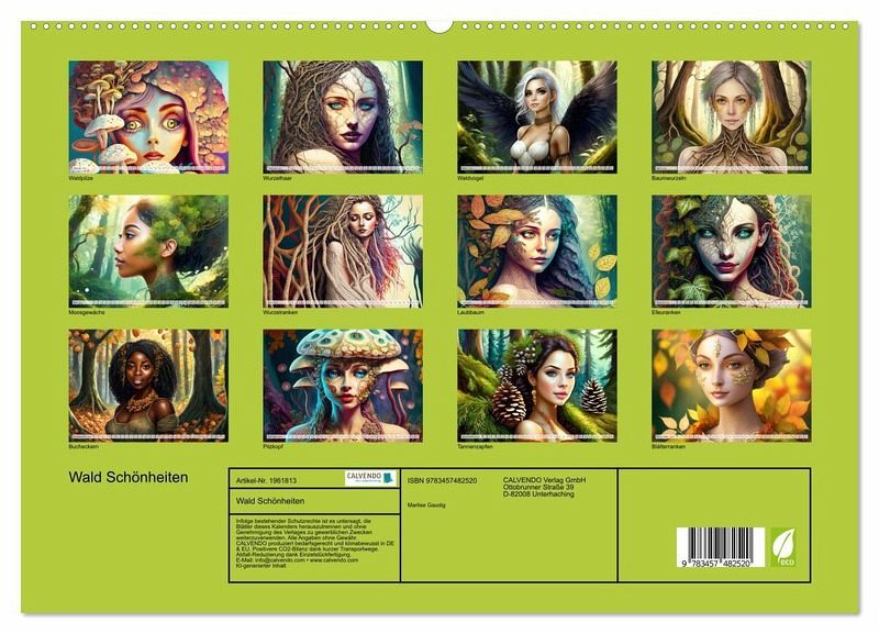 PREMIUM-LINIE - Brillanter Fotokalender mit 12 wunderschönen Motiven, Kunstdruck in Hochglanz in Museumsqualität.QUALITÄT - edle Materialien, stabile Rückwand mit 2 innovativen Einstecktaschen für eine optimale Präsentation an der Wand.NACHHALTIG - deutliche Abfallreduzierung durch bedarfsgerechte Einzelstückfertigung, umweltfreundliches FSC-zertifiziertes Papier, Produktion in Deutschland, klimabewusste Logistik.PERFEKTES GESCHENK - Kalender für Freunde und Familie, für Kinder und Erwachsene, jung und alt, zu Weihnachten, Geburtstag oder zwischendurch.Fantasy Waldfrauen Portraits mit Blättern Ästen Moos Wurzeln von Autor(in): Marlise Gaudig