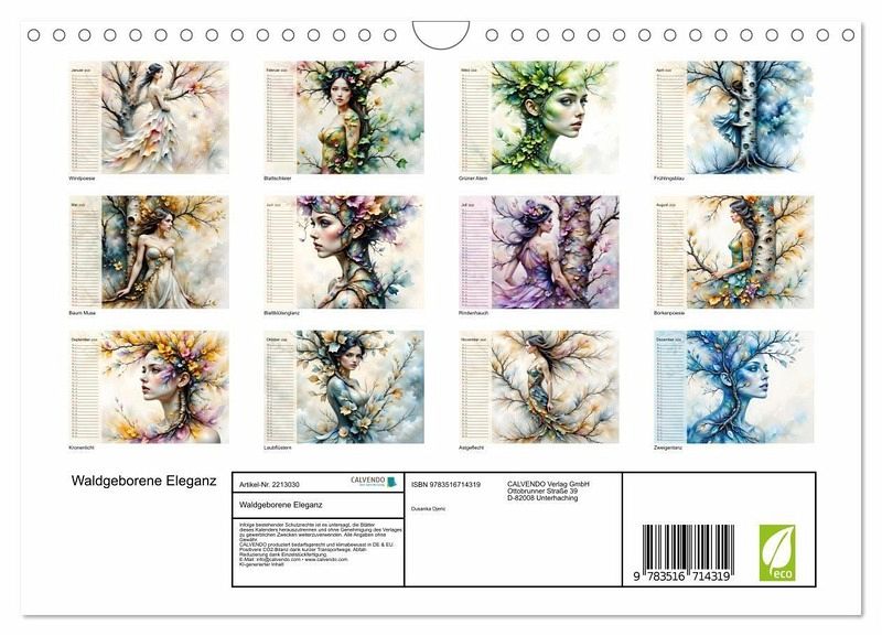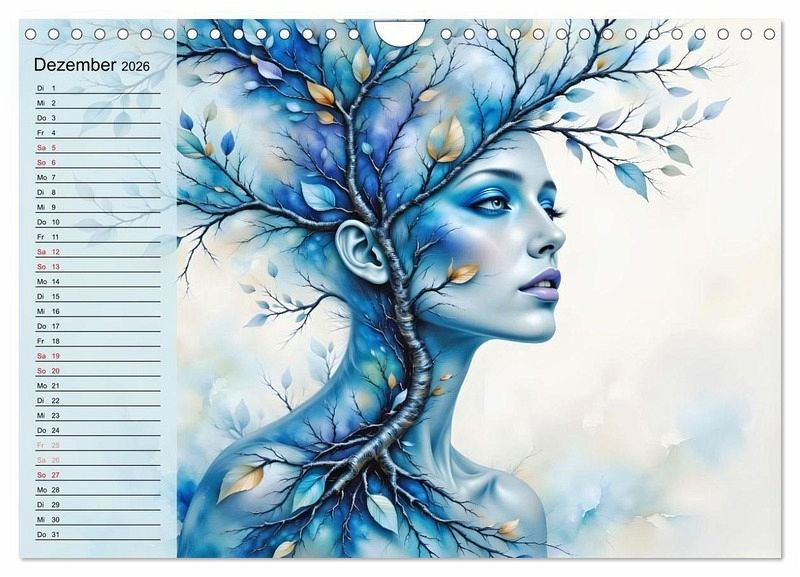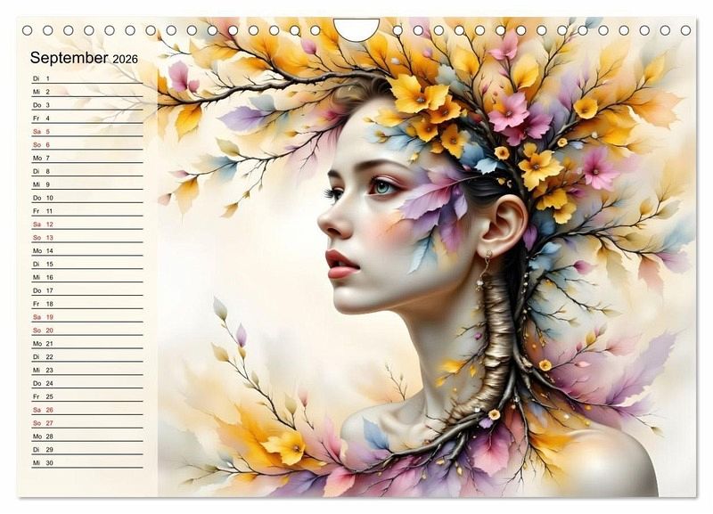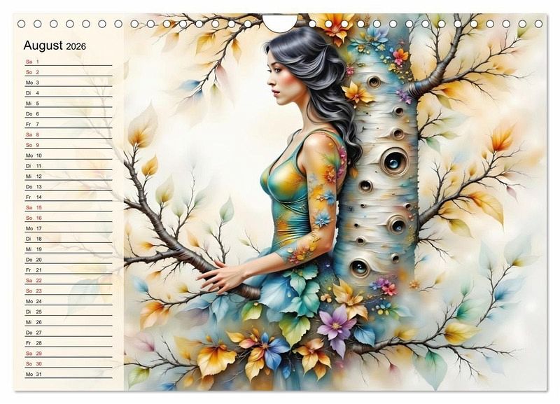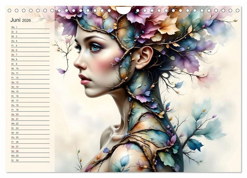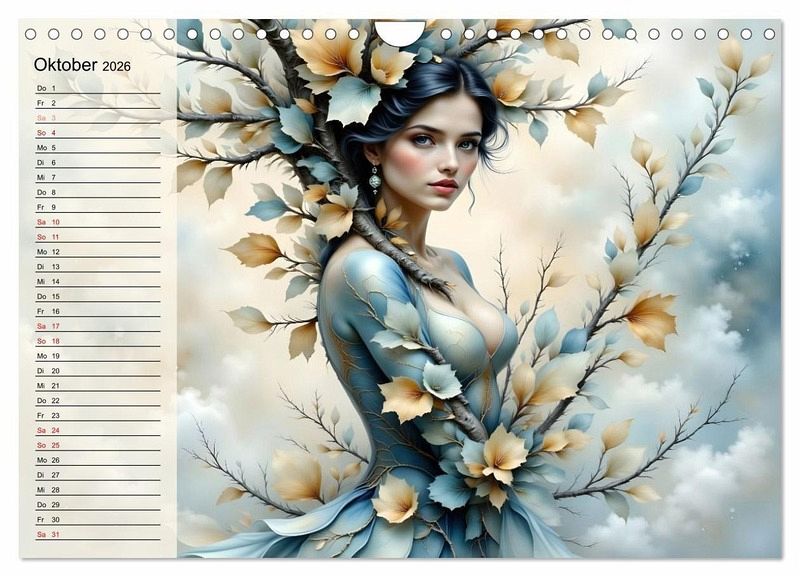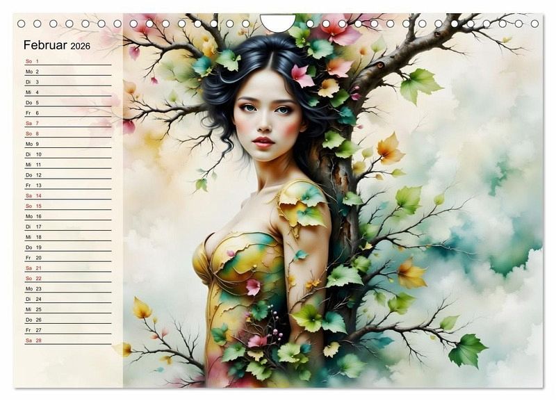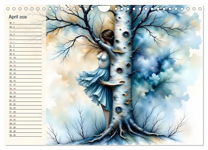Tauchen Sie ein in ein Jahr voller Verwandlung und stiller Wunder. Dieser Kalender ist mit Hilfe von KI erstellt worden und zeigt die zarte Entstehung einer Frau, die aus Baumstamm, Ästen und Blattwerk geboren wird. Jeder Monat ist ein Augenblick zwischen Wurzel und Wind, Licht und Laub, wo Rinde zu Haut und Zweige zu Haaren werden. Die Bilder erzählen von Geduld, von Natursehnsucht und von einer Schönheit, die aus der Natur selbst emporwächst. Der Kalender bringt Poesie an Ihre Wand und verwandelt jeden Raum in einen geheimen Hain.