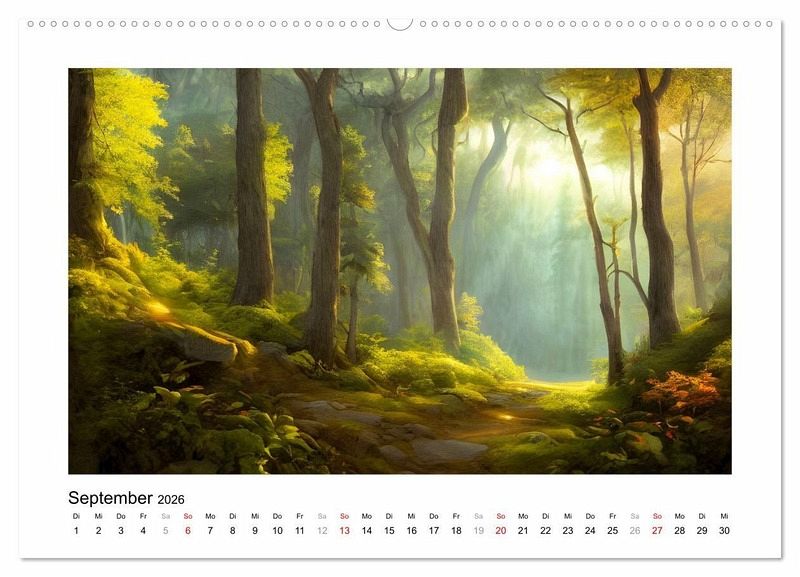 Im Stil bekannter Maler der Romantik wurden diese zauberhaften Gemälde mithilfe von KI erschaffen. Genießen Sie Monat für Monat ein verträumtes Waldbild.