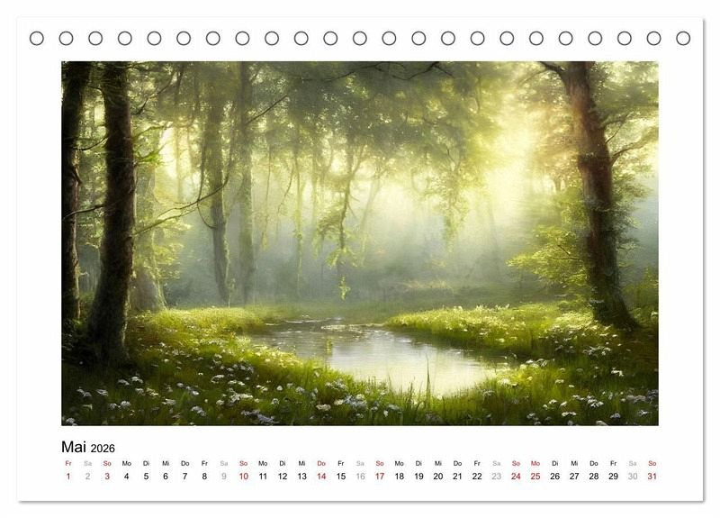 Im Stil bekannter Maler der Romantik wurden diese zauberhaften Gemälde mithilfe von KI erschaffen. Genießen Sie Monat für Monat ein verträumtes Waldbild.