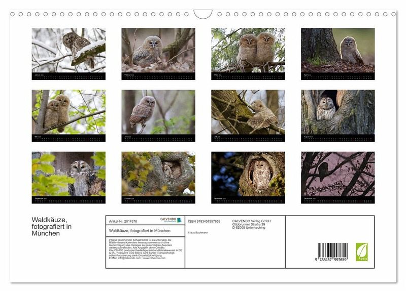 QUALITÄT - Hochwertiger Fotokalender mit 12 wunderschönen Motiven auf lichtbeständigem Bilderdruckpapier, robuste Spiralbindung mit Aufhängebügel.NACHHALTIG - deutliche Abfallreduzierung durch bedarfsgerechte Einzelstückfertigung, umweltfreundliches FSC-zertifiziertes Papier, Produktion in Deutschland, klimabewusste Logistik.PERFEKTES GESCHENK - Kalender für Freunde und Familie, für Kinder und Erwachsene, jung und alt, zu Weihnachten, Geburtstag oder zwischendurch.VIELFALT - Bildkalender in verschiedenen Formaten, z.B. DIN A5, DIN A4, DIN A3 sowie DIN A2. Ob Naturmotiv, Gemälde oder Fotos, ideal für ein persönliches Wohlfühlambiente.Bilder von Waldkäuzen, aufgenommen in Park- und Grünanlagen in und um München von Autor(in): Klaus Buchmann