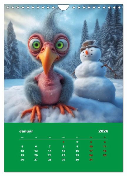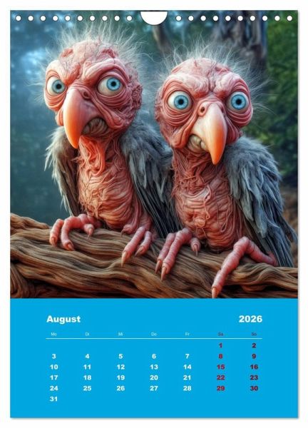 Entdecken Sie ein Jahr voller liebenswert-hässlicher Überraschungen! Unser exklusiver Kalender begleitet Sie durch 12 Monate mit zwei charmanten, aber skurrilen Papageien. Lassen Sie sich von ihrem einzigartigen Charme verzaubern, während sie durch die Jahreszeiten fliegen. Bringen Sie Farbe in Ihren Alltag und gönnen Sie sich diesen hinreißenden Begleiter. Einzigartig und unvergesslich - holen Sie sich diesen bezaubernden Kalender noch heute!