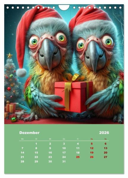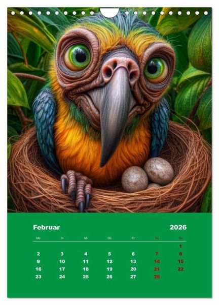 Entdecken Sie ein Jahr voller liebenswert-hässlicher Überraschungen! Unser exklusiver Kalender begleitet Sie durch 12 Monate mit zwei charmanten, aber skurrilen Papageien. Lassen Sie sich von ihrem einzigartigen Charme verzaubern, während sie durch die Jahreszeiten fliegen. Bringen Sie Farbe in Ihren Alltag und gönnen Sie sich diesen hinreißenden Begleiter. Einzigartig und unvergesslich - holen Sie sich diesen bezaubernden Kalender noch heute! Bilder wurden mit Hilfe von künstlicher Intelligenz erstellt!