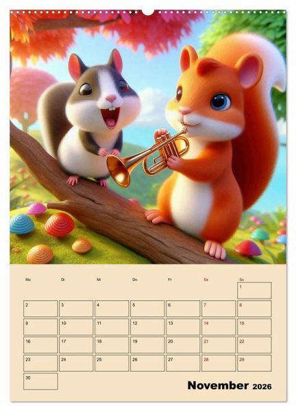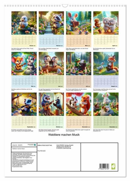 Tauchen Sie ein in eine Welt, in der die Natur zum Leben erwacht und die Tiere des Waldes ihre eigenen Melodien spielen. Unser einzigartiger Kalender begleitet Sie durch das Jahr mit atemberaubenden Illustrationen von Waldtieren, die musizieren.