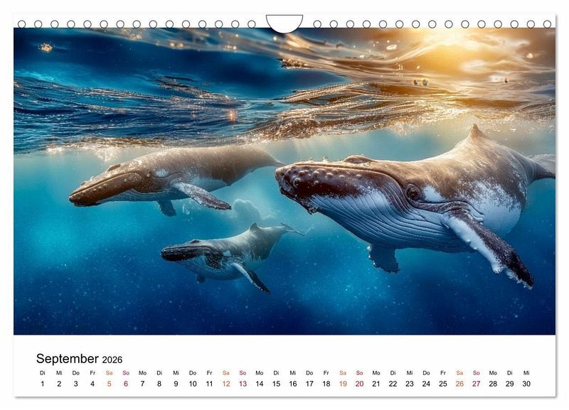 Tauchen Sie ein in die Welt der Ozean und bewundern Sie imposante Wale, die in eleganten Sprüngen die Wasseroberfläche durchbrechen, friedlich mit Artgenossen durch die Tiefen des Ozeans gleiten oder ihre mächtigen Schwanzflossen vor glutroten Sonnenuntergängen in den Himmel recken. Diese neuen atemberaubenden KI-generierten Bilder zeigen nicht nur die beeindruckende Größe dieser sanften Riesen - sie lassen uns staunen, innehalten, träumen, denn sie erinnern daran, wie groß, geheimnisvoll und majestätisch das Leben im Ozean ist - und wie tief es den Menschen berühren kann. Ein ideales Geschenk für alle Naturfreunde, Meeresbegeisterte und Tierfans.